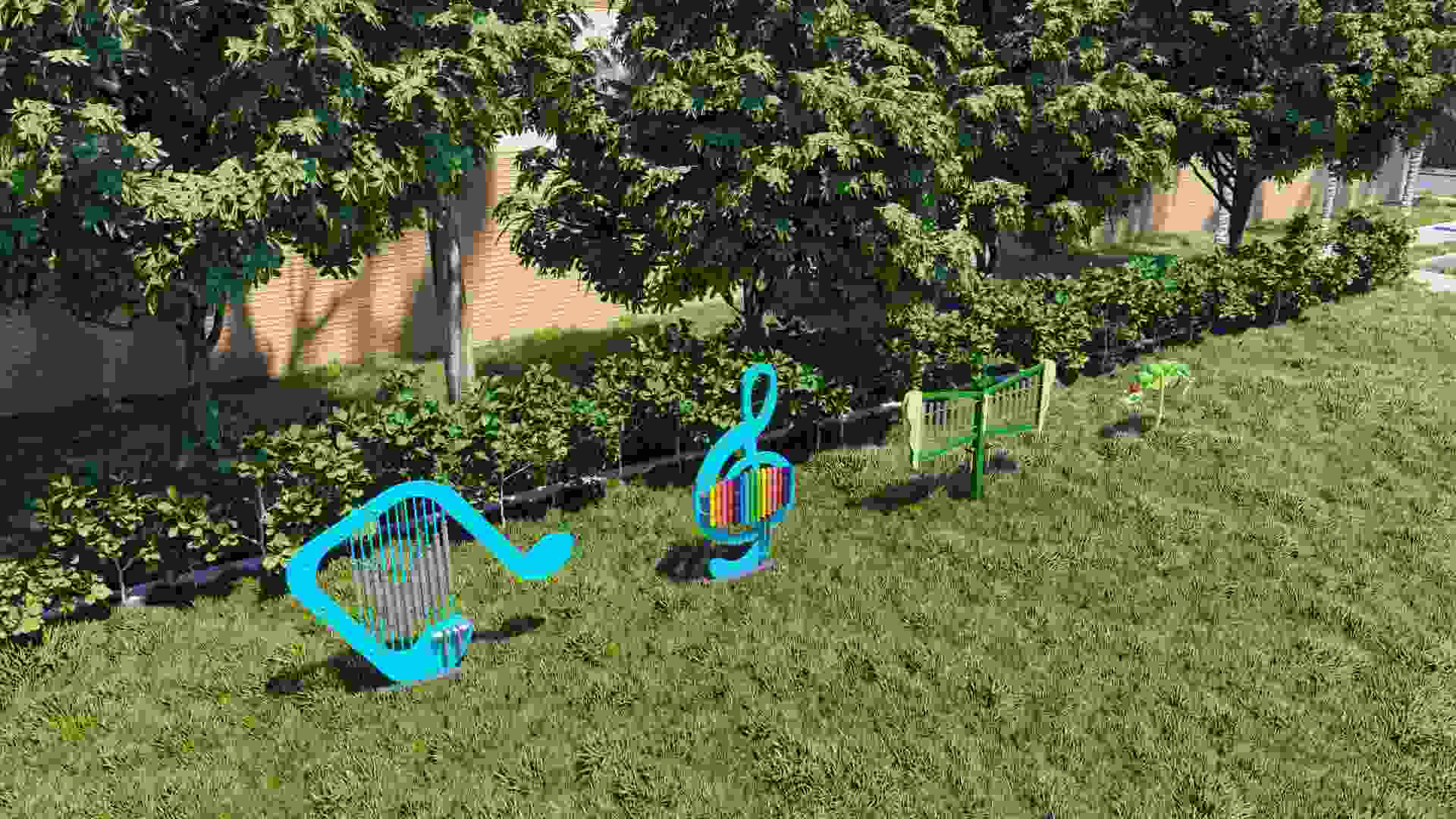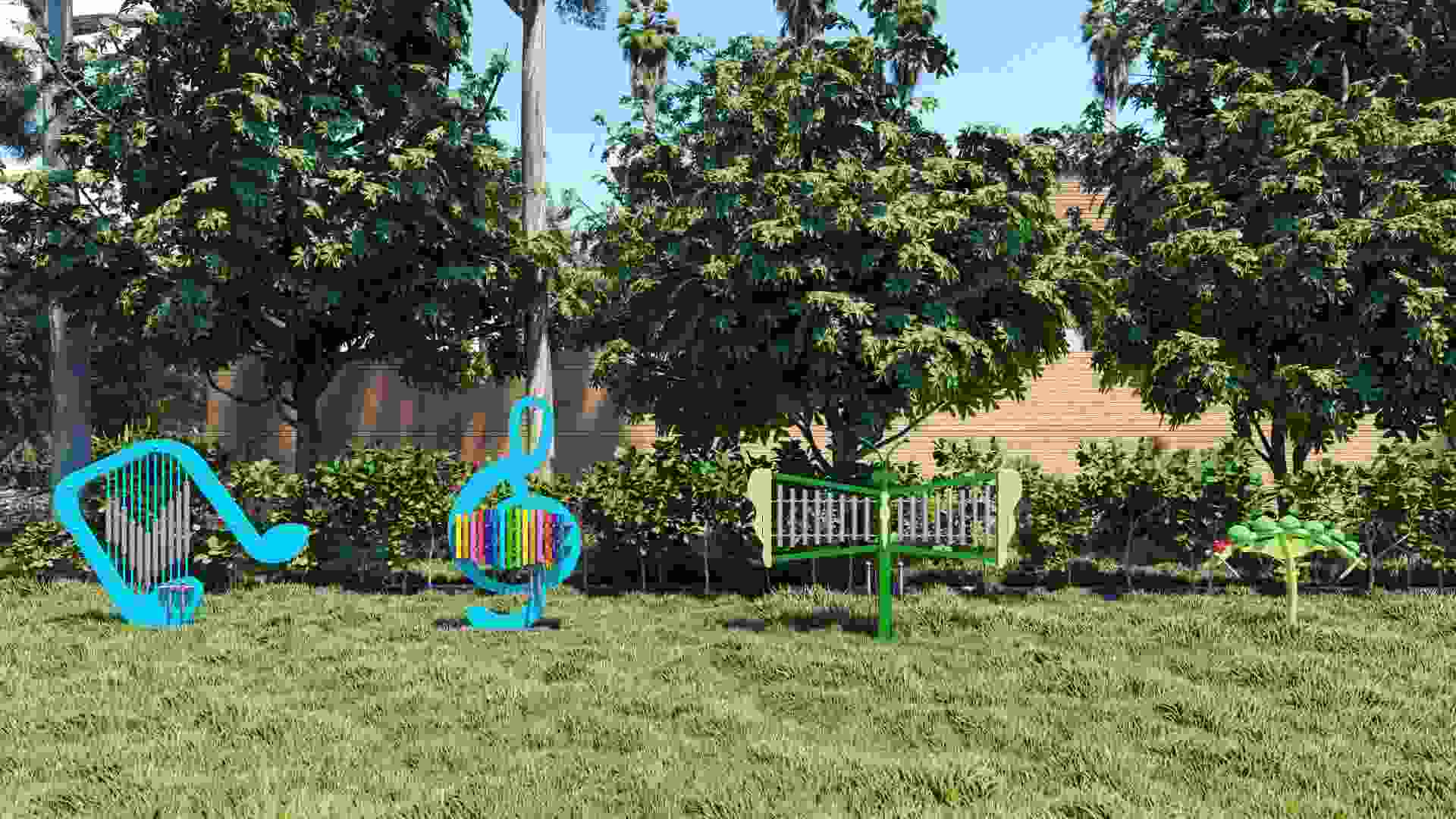 เมื่อความเขียวขจีเปลี่ยนเป็นเถาวัลย์ที่ทอดยาว และเมื่อโดมเติบโตในรูปแบบที่กระจัดกระจายเหมือนเห็ด Caterpillar Bells ก็เปรียบเสมือนเอลฟ์แห่งดนตรีที่ "เติบโต" จากหญ้า ตัวหลักใช้สีเขียวผลไม้สดเป็นโทนหลัก โดยมีจุดเพอร์คัชชัน "ผลไม้สีแดง" ที่โดดเด่น ซึ่งไม่เพียงแค่เหมาะกับบรรยากาศที่มีชีวิตชีวาของสภาพแวดล้อมกลางแจ้งเท่านั้น แต่ยังใช้สีที่ตัดกันเพื่อนำทางเด็กๆ ในการสำรวจเชิงรุก มีโดมเครื่องเพอร์คัชชัน 6 โดมจัดเรียงแบบไล่ระดับ จับคู่กับด้ามเพอร์คัชชันที่เชื่อมโยงกันด้วยเชือกคู่ ไม่จำเป็นต้องใช้เครื่องมือเพิ่มเติม เพียงจับที่จับเบาๆ เพื่อเรียกเสียงที่ชัดเจนของสเกลต่างๆ ไม่ว่าจะเป็นการสร้างสรรค์ที่ดื่มด่ำเพียงลำพังหรือการทำงานร่วมกันหลายคน คุณก็สามารถเลือกท่วงทำนองที่เป็นเอกลักษณ์เฉพาะตัวของคุณได้
