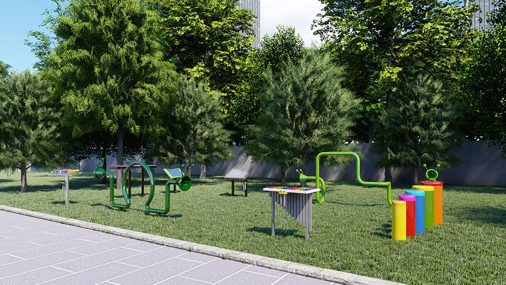 Melody Outdoor Musical Park Instrument เป็นโทรศัพท์โลหะกลางแจ้งขนาดกะทัดรัดและสง่างามที่ดึงดูดผู้ฟังด้วยน้ำเสียงที่สดใสและยาวนาน มันมีโน้ตอลูมิเนียมอะโนไดซ์เก้าตัวปรับเข้าสู่ระดับ Pentatonic ใน C Major ซึ่งเปล่งเสียงที่เปล่งประกายแวววาวในช่วงกลาง/โซปราโน กรอบและ resonator ที่ทนทานนั้นทำจากท่อชุบสังกะสีคุณภาพสูงที่แข็งแรงทำให้มั่นใจได้ว่าชีวิตที่ยาวนานและความทนทาน